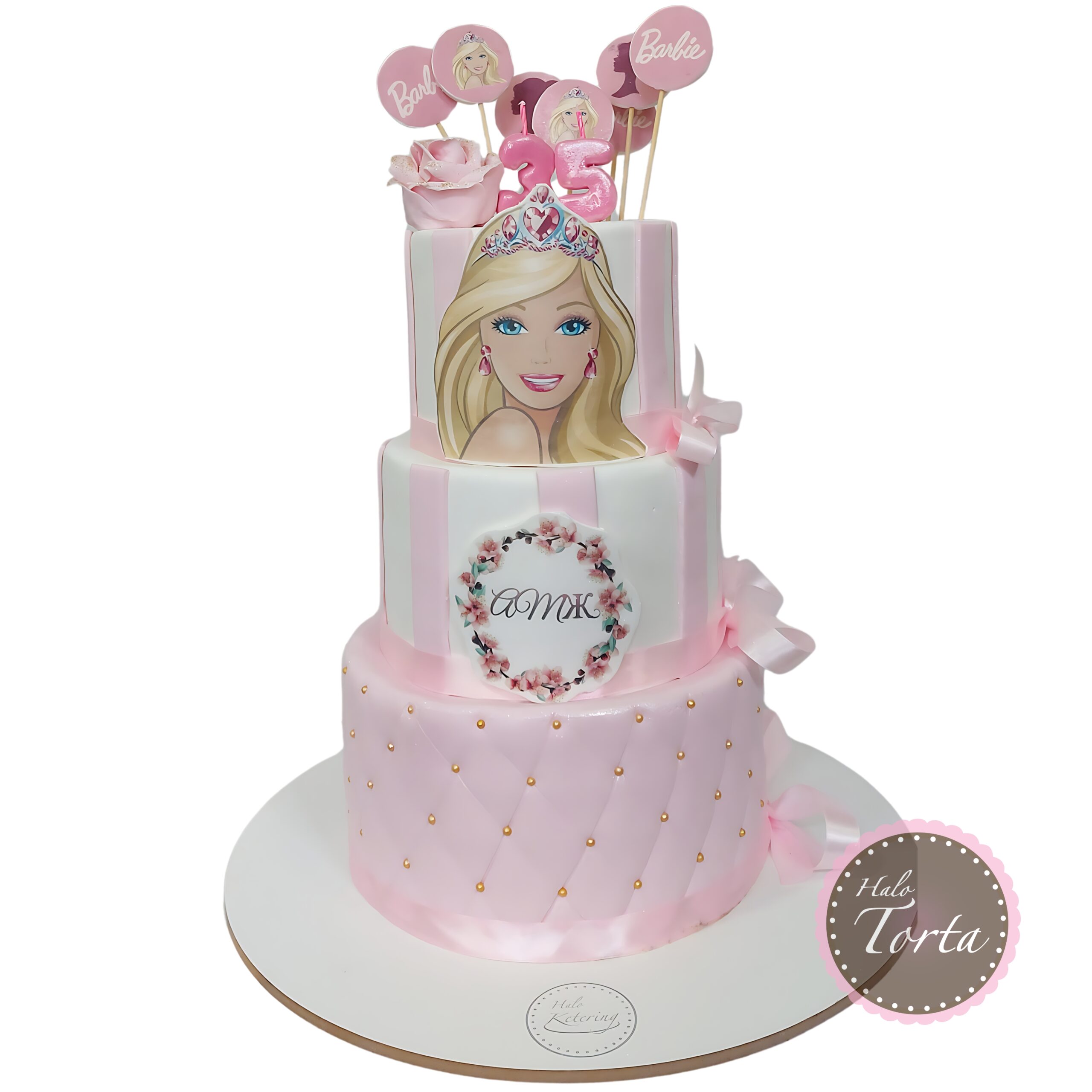 „Barbie Princess Dream“ – elegantna ružičasta torta sa biserima i mašnama.